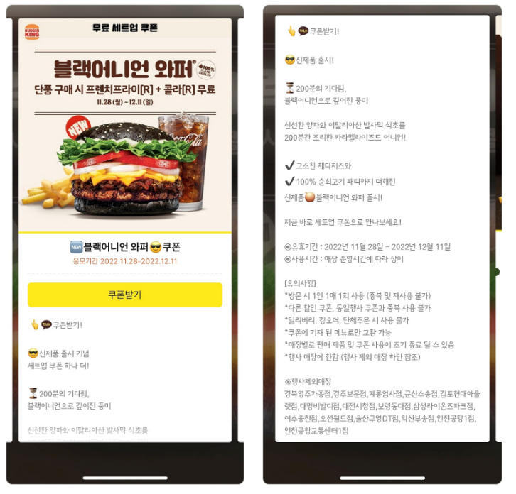 버거킹 11월 , 12월 행사 및 버거킹 신메뉴 블랙 어니언 와퍼 행사