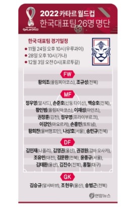2022 카타르 월드컵 국가대표 최종 명단 , 라인업이 공개 되었습니다.